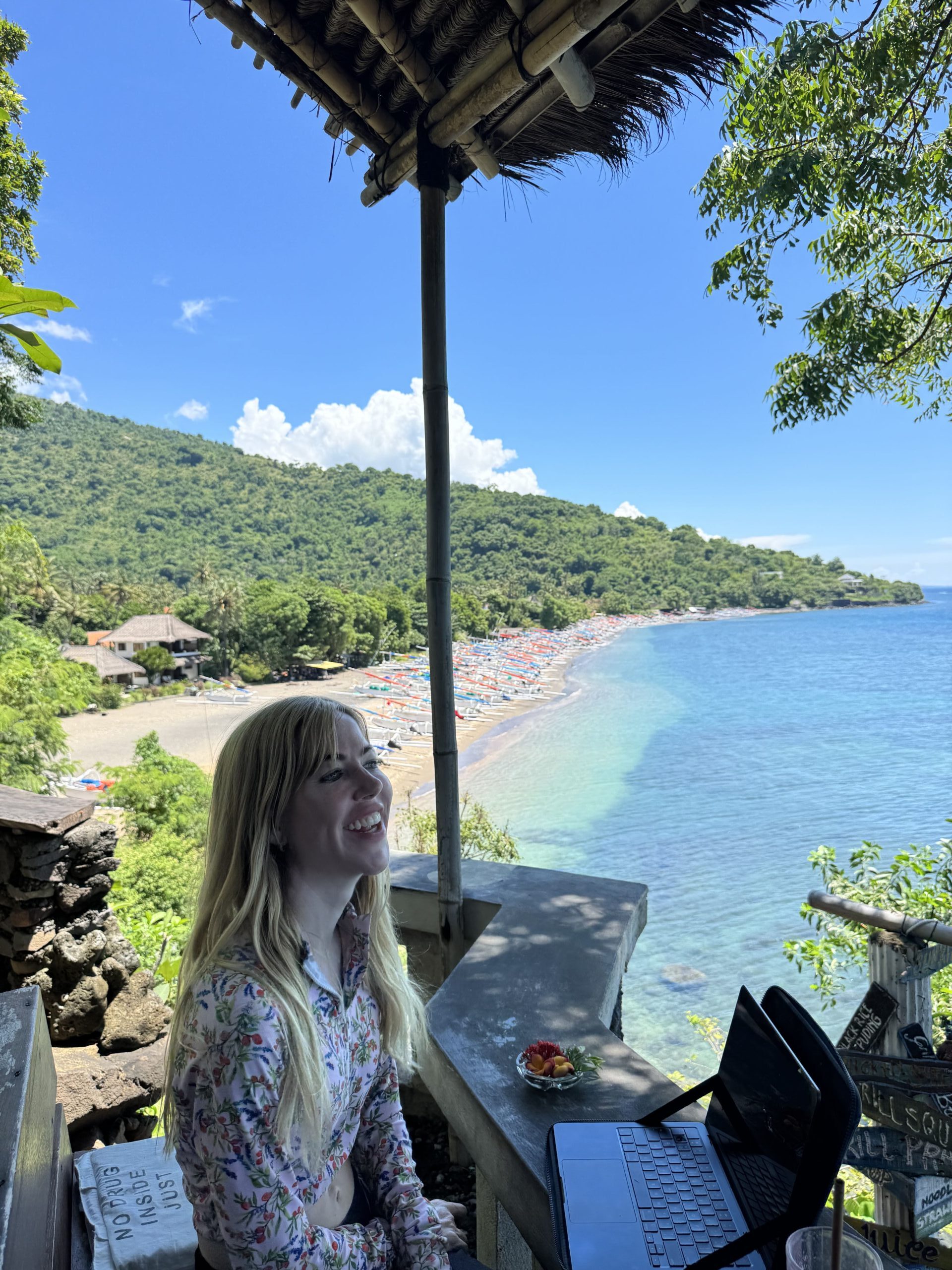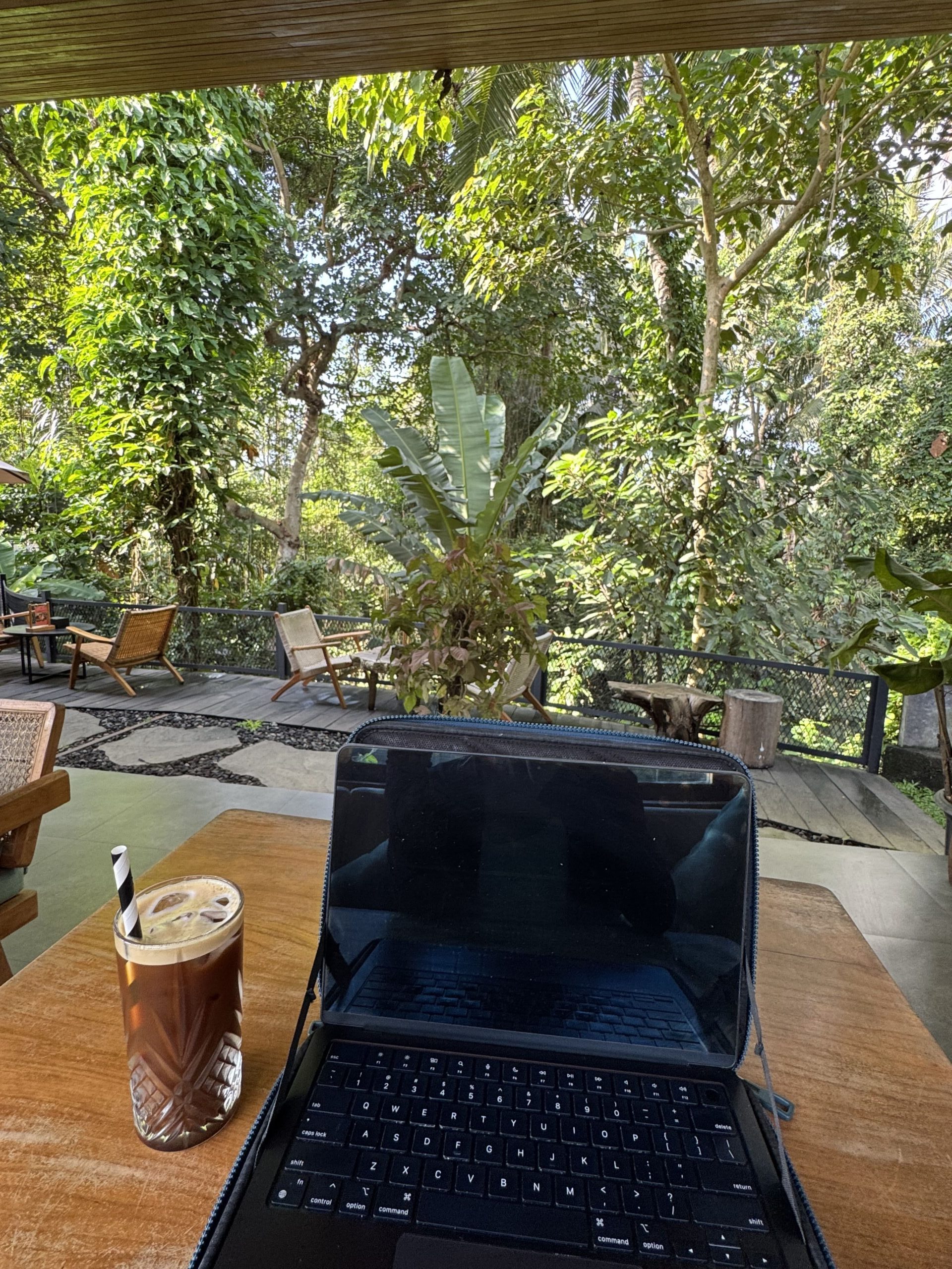 Working from a cafe in Ubud, Bali