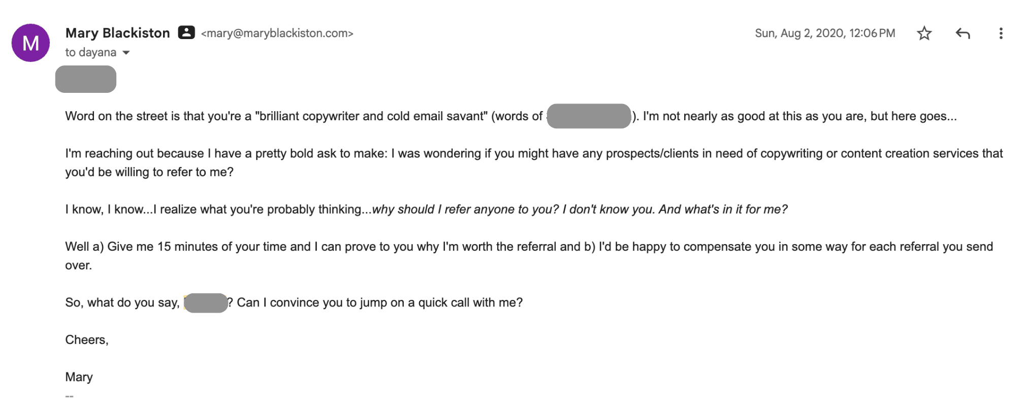 I wanted more freedom. The freedom to work when I wanted, charge my own rates and be my own boss. So after four years, I left that job to launch my own freelance copywriting business. A business that’s allowed me to make more money. Working way less (normally just a couple of hours per day).